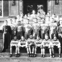 - A football team seated on the steps of the Twin Falls High School.