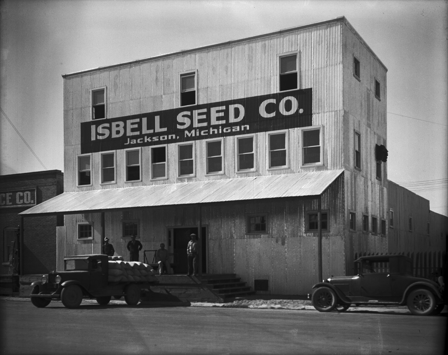 - Isbell Seed Company.; Men loading bags on a truck.