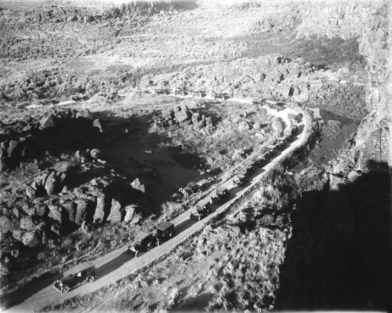 - A line of automobiles (cars) coming up the Shoshone Falls grade.