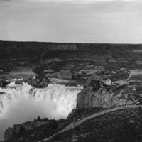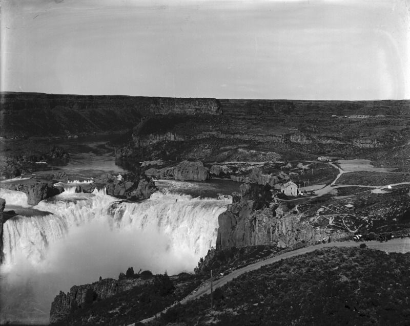 - The Shoshone Falls, showing buggies on the grade, and the hotel.