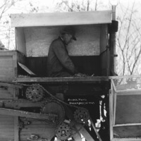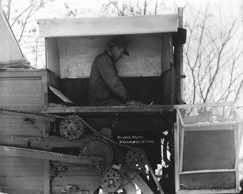 - A man in the cab of a threshing machine. December 28, 1927.
