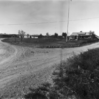 - A large farmyard, with a family standing near the house, and other buildings in view.