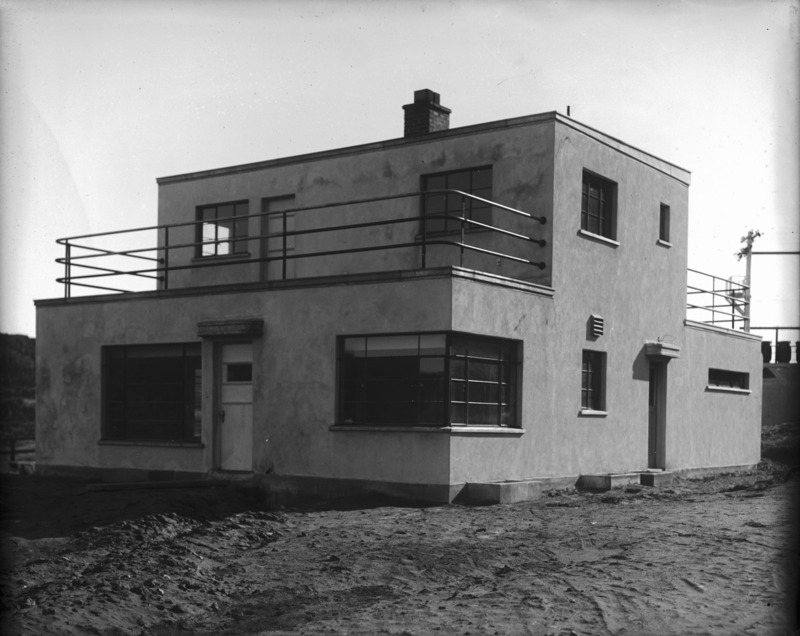 - Exterior view of Idaho Power Company's House of Today at the Twin Falls power plant. After its initial exhibition by the public, it became a residence for the plant's superintendent.
