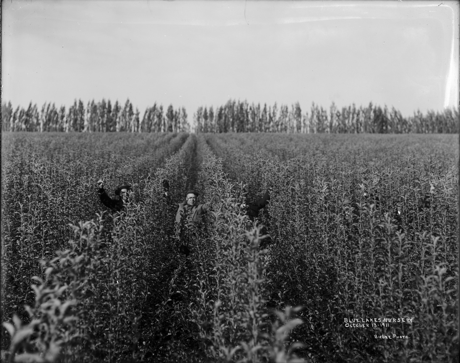 - "Blue Lakes Tree Nursery, October 13, 1911;" three men standing amid plants in a field, though only two are clearly visible.