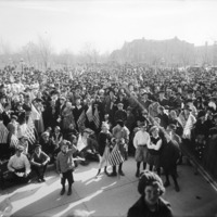 - Armistice Day, November 11, 1918; a large crowd of people in front of the county court house celebrating the end to World War I. Methodist Church is in the background.