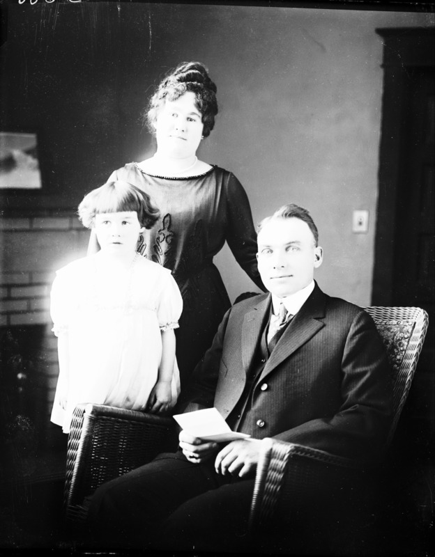- Portrait of a young family (a man, a woman, and a child).