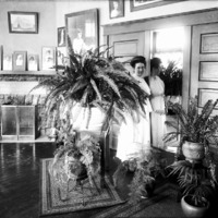 - Jessie Bisbee, near a mirror in the Studio's main room, surrounded by plants.