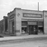 - Exterior view of the Bisbee Studio before addition, looking at the front entrance (with Bisbee's motto "Life and Art Are One") and along 2nd Ave S. A sign in the background reads, " P.J. Grossman, Undertaker and Embalmer; successor to H. E. Hunt and Co."