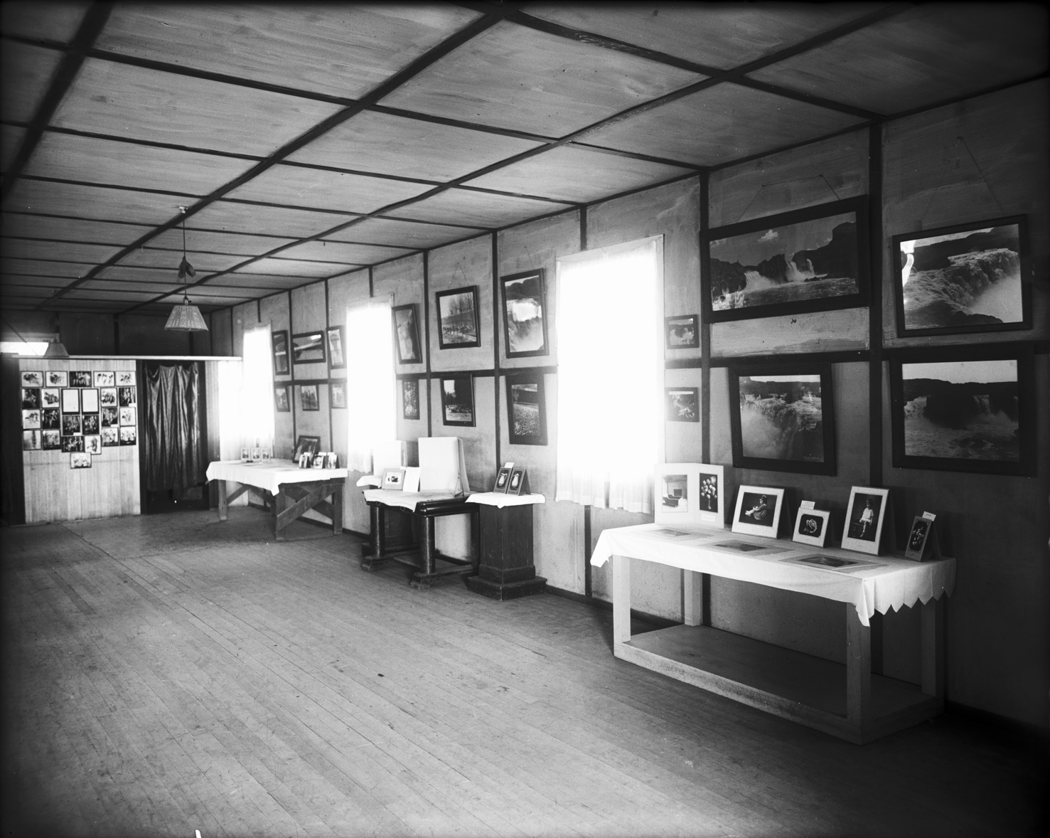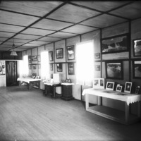 - Interior of the Bisbee studio; room with framed photos hung on walls and on tables.