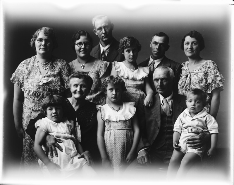 - Portrait of a family of eleven people (three men, four women, three girls, and one boy).
