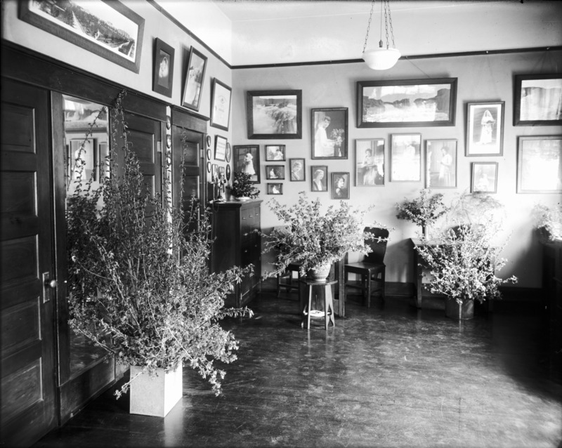 - Interior of the Bisbee Studio main room, with several potted plants.