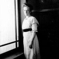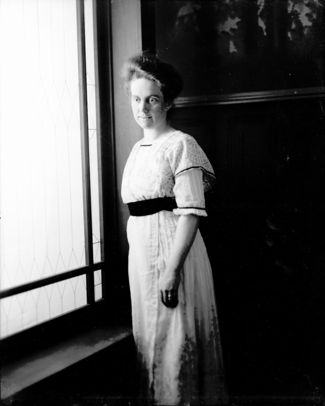 - Portrait of Jessie Bisbee standing near a window in the Bisbee Studio.
