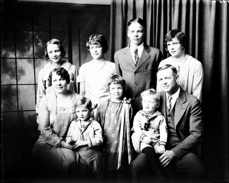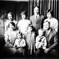 - Portrait of a family with one woman, one man, three boys, and four girls.