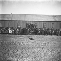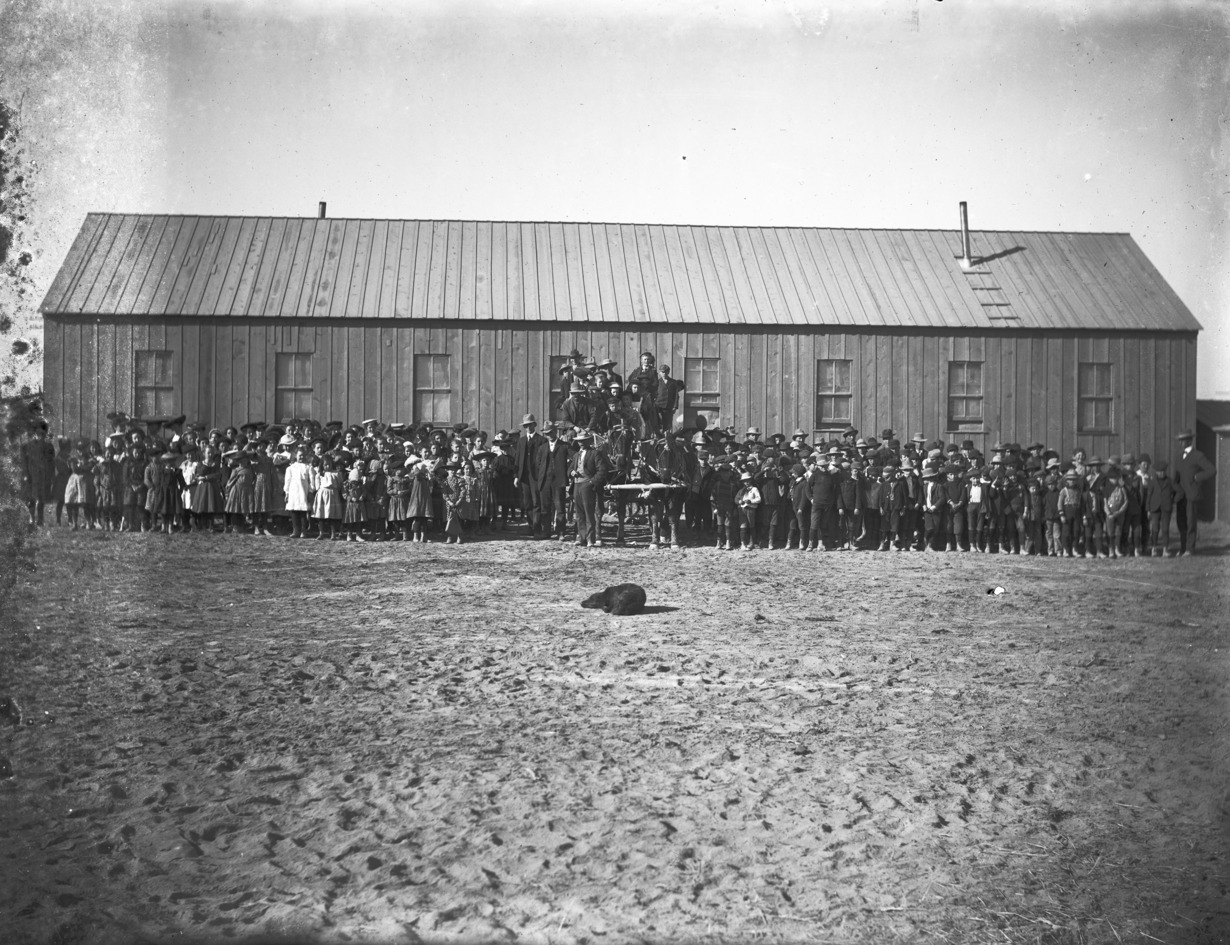 - A large group of school children posed at the side of the first school in Twin Falls.