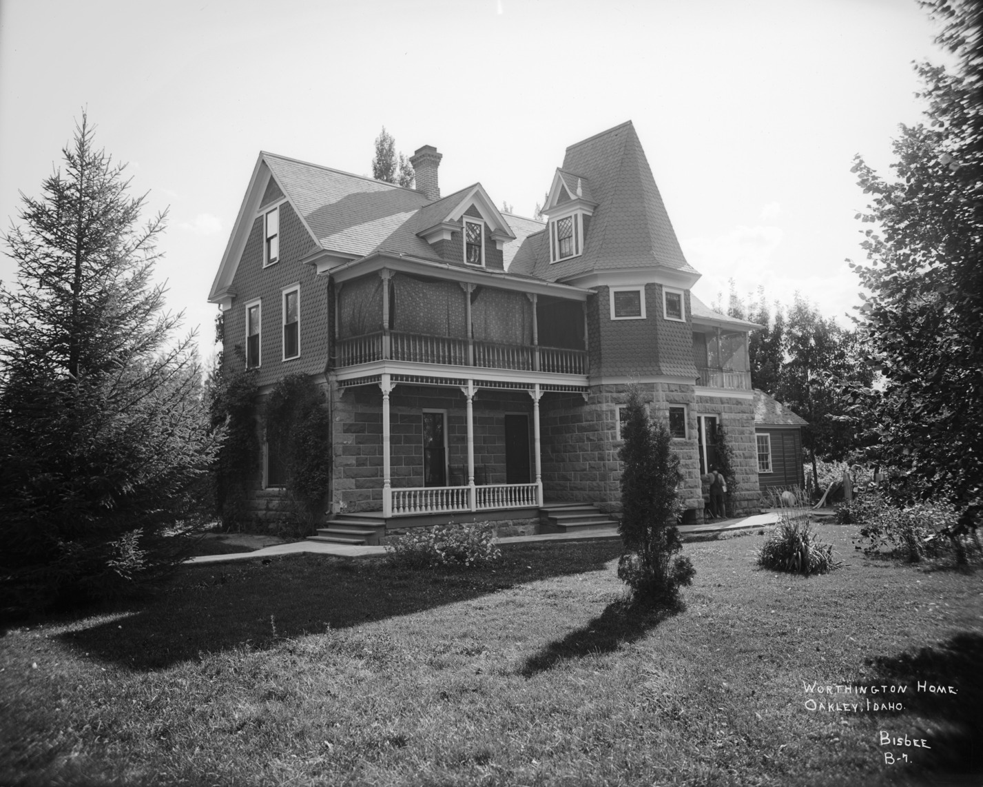- "Worthington Home. Oakley, Idaho;" large Queen Anne style house surrounded by trees