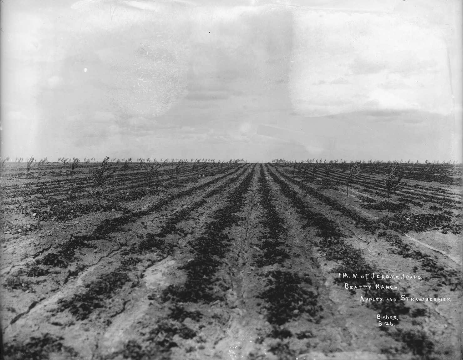 - "One Mile North of Jerome, Idaho. Beatty Ranch. Apples and Strawberries;" field of irrigated crop