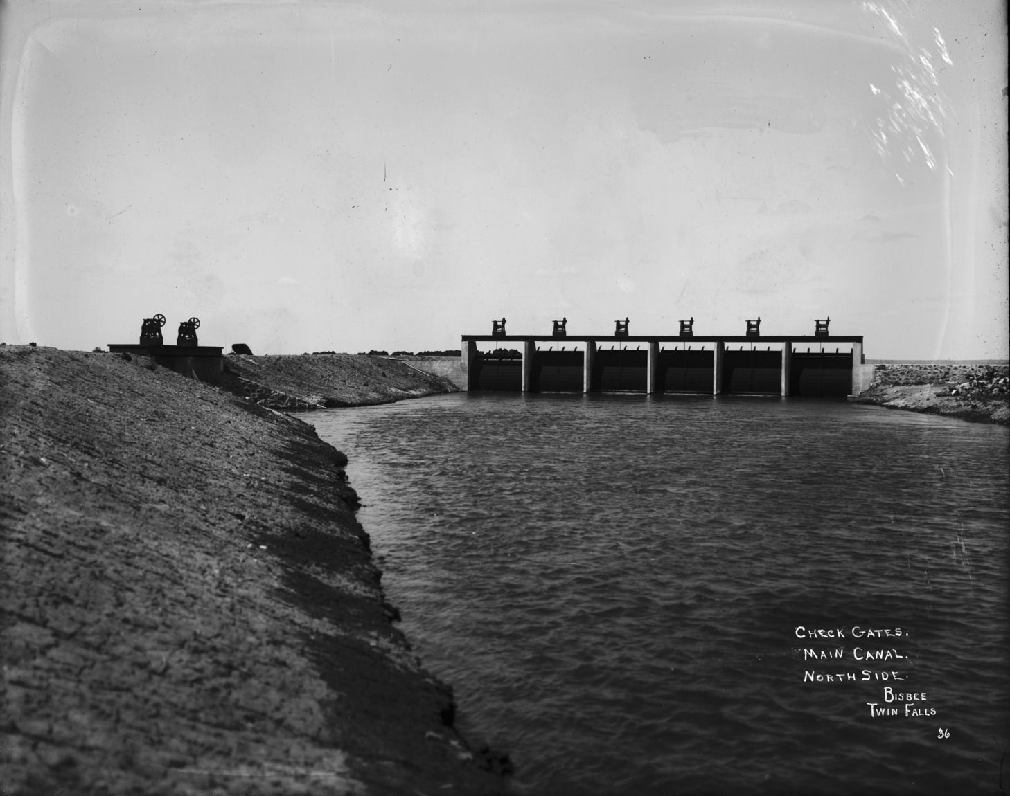 - "Check Gates, Main Canal. North Side;" several gates cross the canal