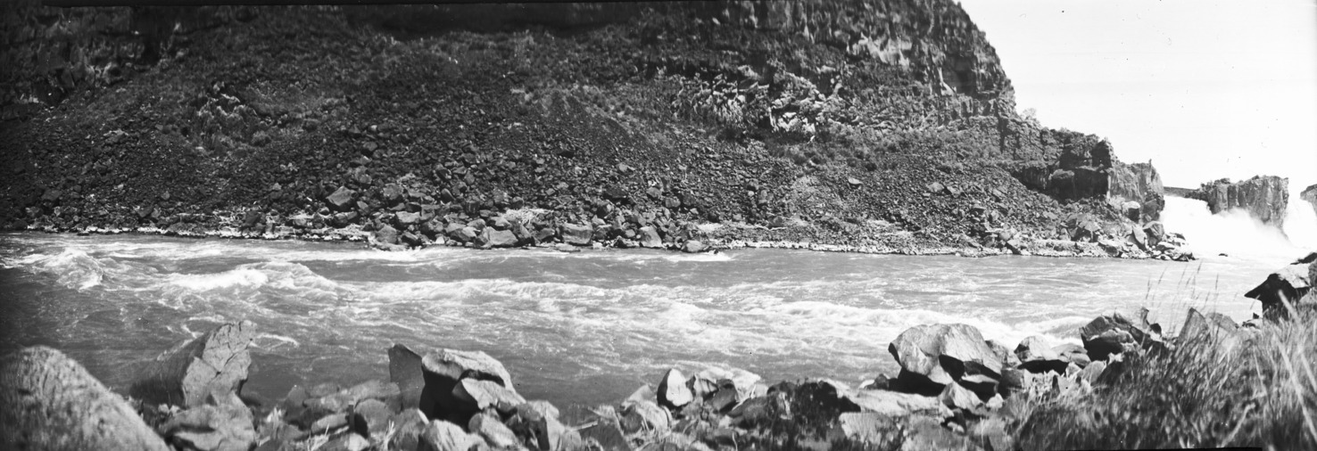- Panoramic view of the Snake River and its canyon walls downstream of the Twin Falls.