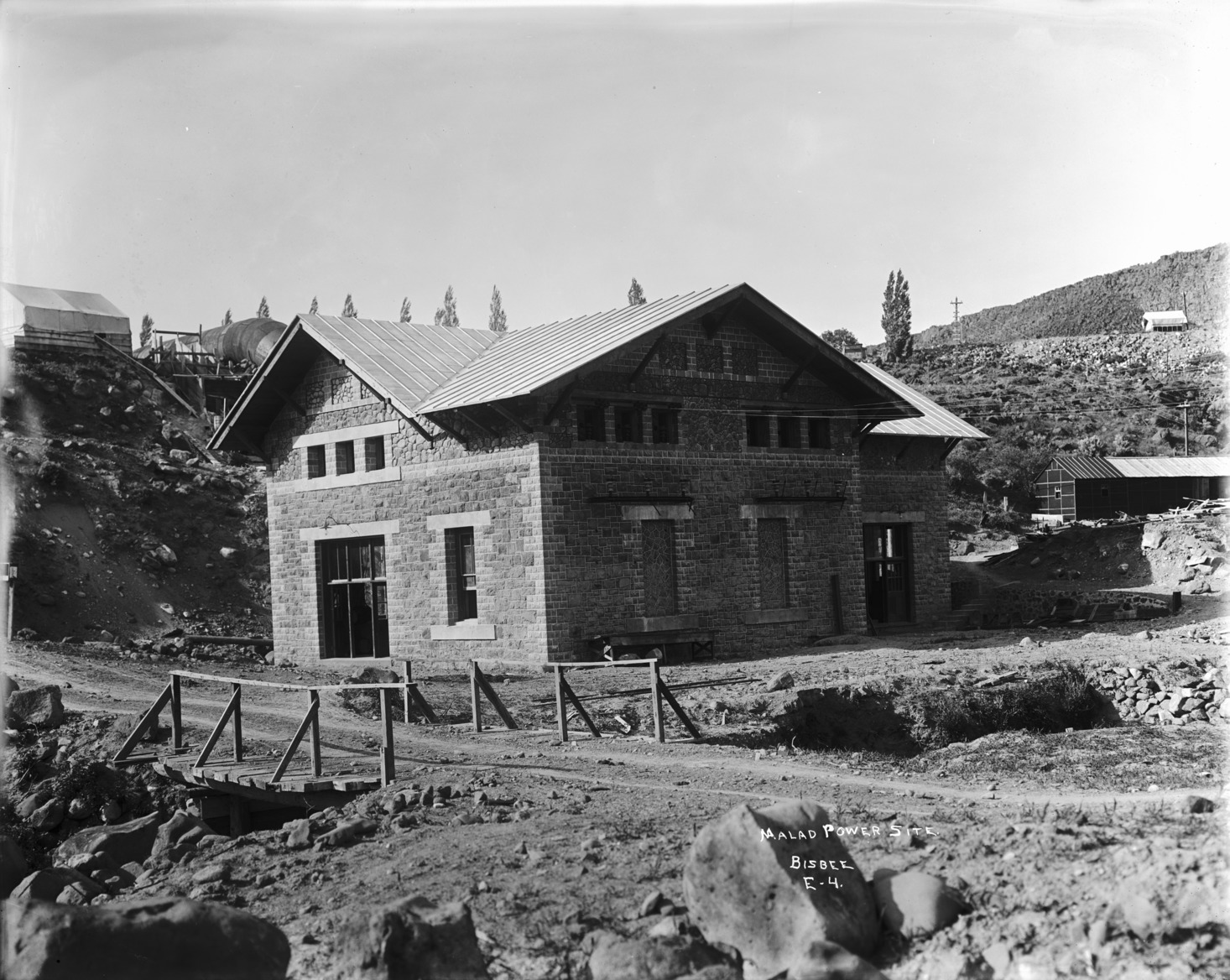 - "Malad Power Site;" brick power station building on the Malad River, near Hagerman, Idaho. Several outbuildings and equipment are also visible.