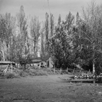 - Ducks float on a pond near a wooded cabin set amongst trees.