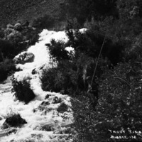 - "Trout Time;" a man stands amidst brush, fishing in a rushing spring