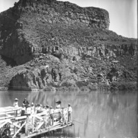 - "Point McKinley;" a group of people ride on the ferry across the Snake River above the Shoshone Falls.