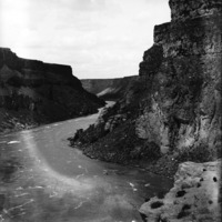 "Below the Falls;" view west down the Snake River Canyon, below Shoshone Falls.