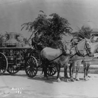 - Twin Falls Fire Department water pump wagon being drawn by horses; City Park and gazebo (band stand) gazebo in background
