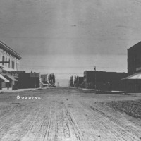 - "Gooding;" view down an intersection with several buildings. Businesses visible include: a bank; hardware store; dry goods; The Toggery, Gent's Furnishings, Clothing, Shoes; Light and Power; a hotel; and the U.S. Post Office.