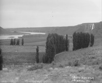 PC-2204 "Sand Springs;" view of waterfall and fields in the Hagerman Valley.
