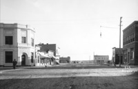 PC-2207 The corner of Main Street and Broadway Avenue in Buhl, Idaho, showing the Buhl Bank & Trust Building. Other businesses visible include: Peck's Grocery, a bakery, a restaurant, baths, a livery, City Hotel