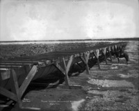 B 105 "Flume to Carry Water Across Depression, North Side;" a man on a horse stands at the side of the flume