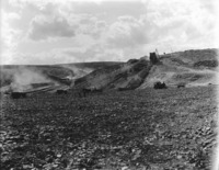 B 011 "Top of Oakley Dam;" crews working at moving fill dirt