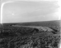 S 048 Wide view of a dry canal traversing the sage brush; a two-horse buggy stands in the dry canal bed in the center.