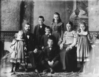 1842 Portrait of a family: a man, a woman, three girls, and three boys