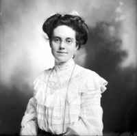 1835 Portrait of Jessie Bisbee standing near a window in the Bisbee Studio.