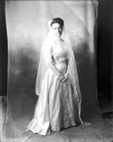 1825 Portrait of Jessie Bisbee in a wedding dress.