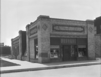 1702 Exterior view of the Bisbee Studio before addition, looking south at the corner of 2nd Ave East and 2nd St East (now Hansen St E.). In the building to the right are P.J. Grossman Undertaking and Clothing Exchange. Further down the street is Royal Bakery