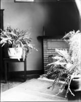 1700 Interior of Bisbee Studio. Ferns in vases and fireplace are visible.