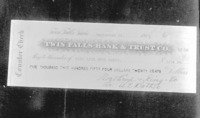 1538 A check from the Twin Falls Bank and Trust to High Line Seed Farms for $56,254.00. September 22, 1915; Signed by A. E. Bather for Northrup, King and Co.