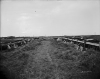 1535 Hereford cattle feeding along mangers.
