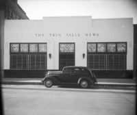 1479 The Twin Falls News building; automobile parked in front.
