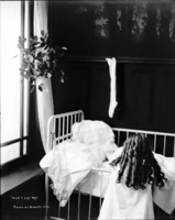 1313 A child (girl) at prayers beside crib. Christmas Theme Photoshoot