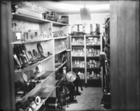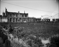 1264 Cress & Bruley Furniture Co.; from the back, across the Bisbee garden; rear of O & B Grocery, City Market, and Bisbee Studio, view of Chrysler Plymouth dealership across 2nd Ave E also visible.