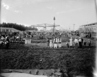 1267 Twin Falls County Fair:' people and amusement rides on the midway. Took place in Filer, Idaho.