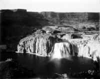 1270 Shoshone Falls with very little water going over; power plant buildings visible.