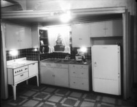 1254 Sales display of a kitchen with several electric appliances.
