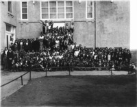 1250 A large group of children at the side of a school posed for a photograph.