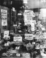 1220 Casey-Parker Implement Company; exterior of building with six trucks in front.