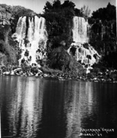 PC-2428 The Twin Falls from the river level, showing all three falls. -